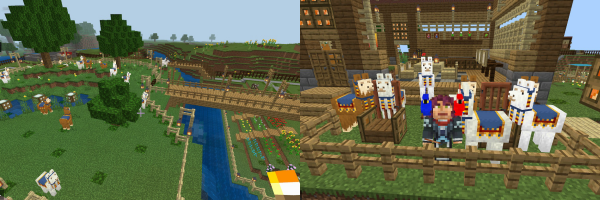 壁画にも描かれている様に「その昔この国が、クリーパーを始めとしたモンスター達に襲われた時。白・ベージュ・茶の三色のラマ達が身を挺して戦い、この国を救ってくれた。」功績を称え、今でもこの国の人々は、とてもラマを大切に扱っている・・・という世界観になっています。